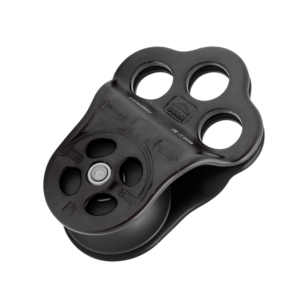 - Side plate shape allows an autoblock knot to function when the rope approaches the sides as well as at the bottom of the pulley